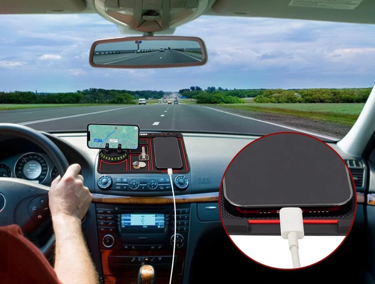 4u1 Silikonska Neklizajuća Podloga za Auto drži tvoj telefon, ključeve, naočare i druge sitnice sigurno na mestu tokom vožnje, bez klizanja i pomeranja. Napravljena je od izdržljivog silikona koji ne klizi i lako se postavlja na tablu automobila.