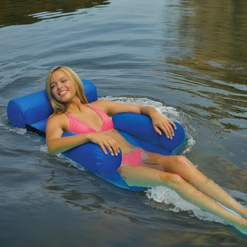 Naša plutajuća ležaljka sa naslonom dizajnirana je za opuštanje bez kompromisa. Sa mekim, udobnim naslonom za leđa i ruke, savršeno se prilagođava obliku tela. Idealna za sunčanje, čitanje ili jednostavno plutanje.